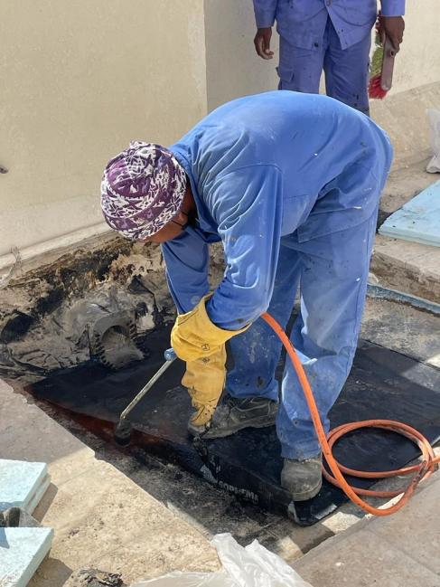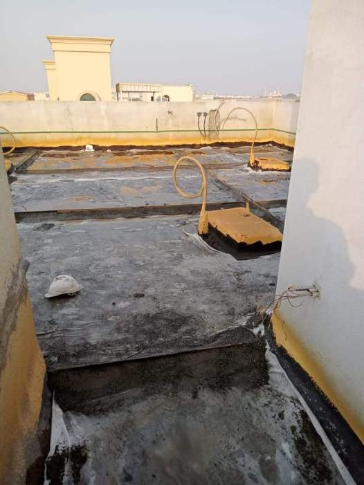 After grinding, concrete powder and debris accumulate and this has to be removed as it gets entrapped between the lining and the surface. Hence, the concrete surface is to be cleaned