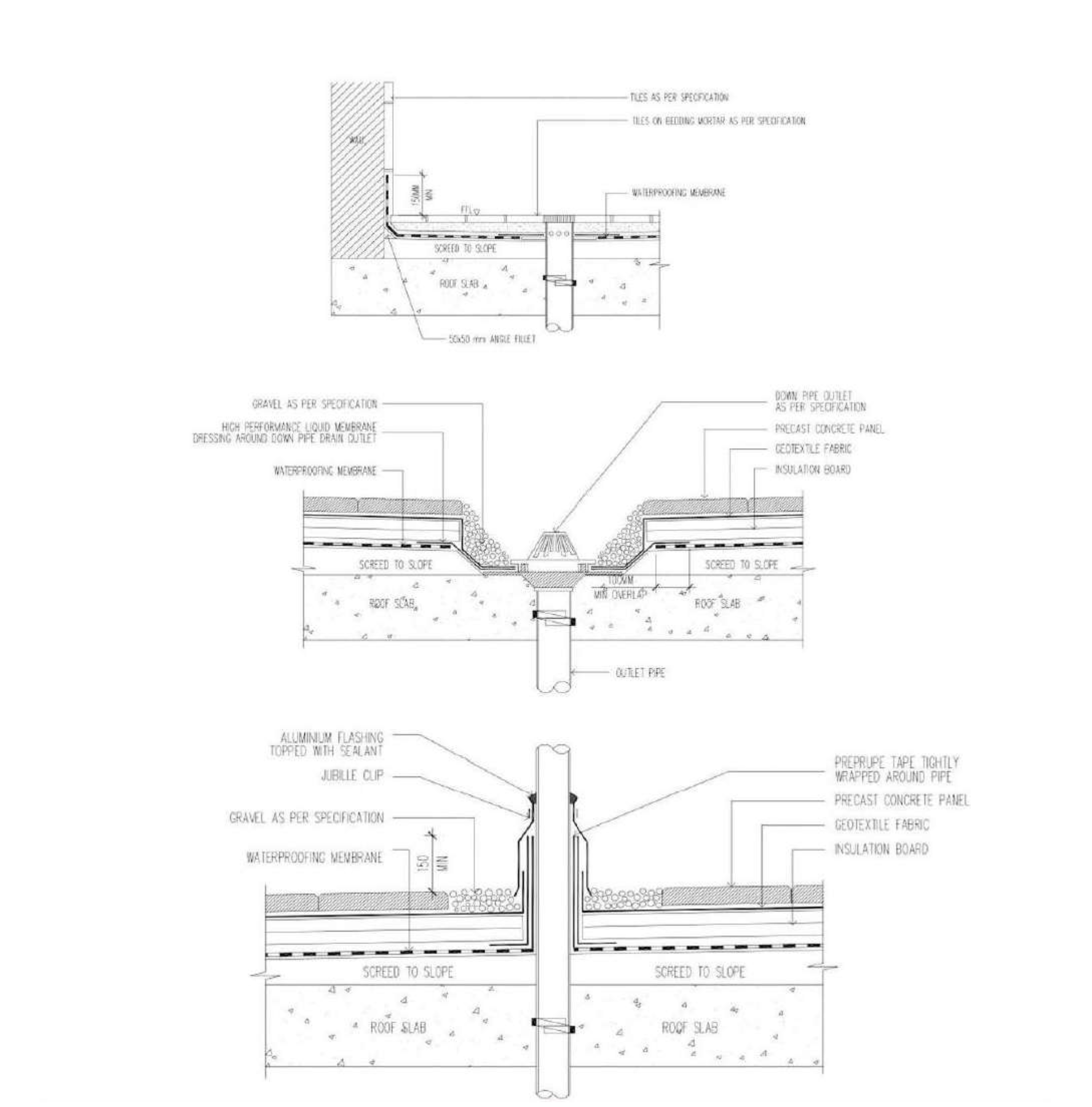 Upstands– All angles and abutments should be sealed with extra care to ensure full bonding, sealing the edges well into the grooves or protective auxiliary materials